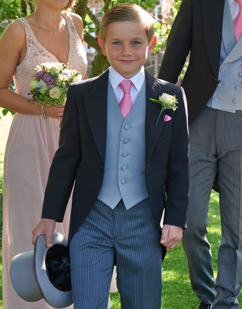 A traditional black herringbone wool tailcoat, with trouser options in stripes. This timeless tailcoat is also referred to as a morning suit. It is without doubt the most popular choice for the classic groom. Top hats are the perfect finishing touch for this outfit if desired.