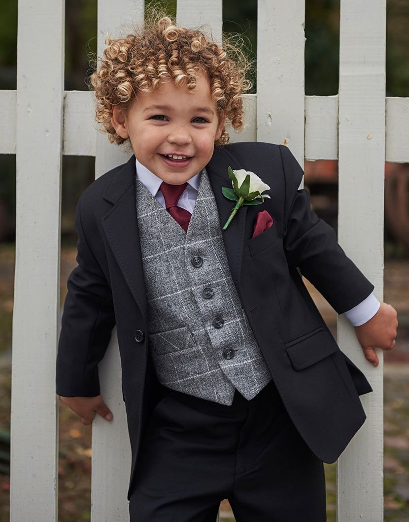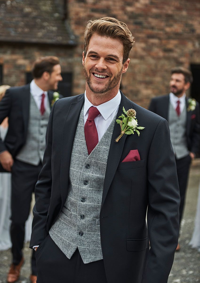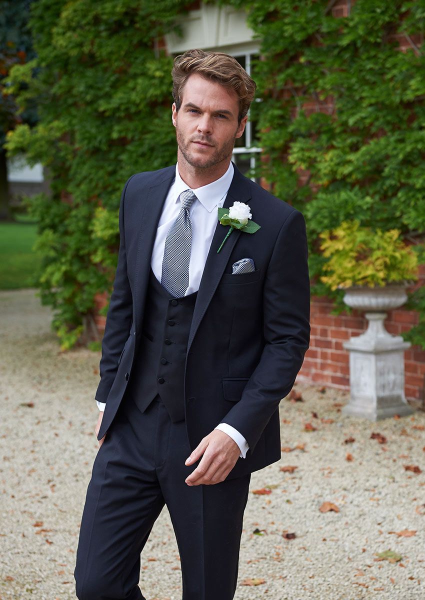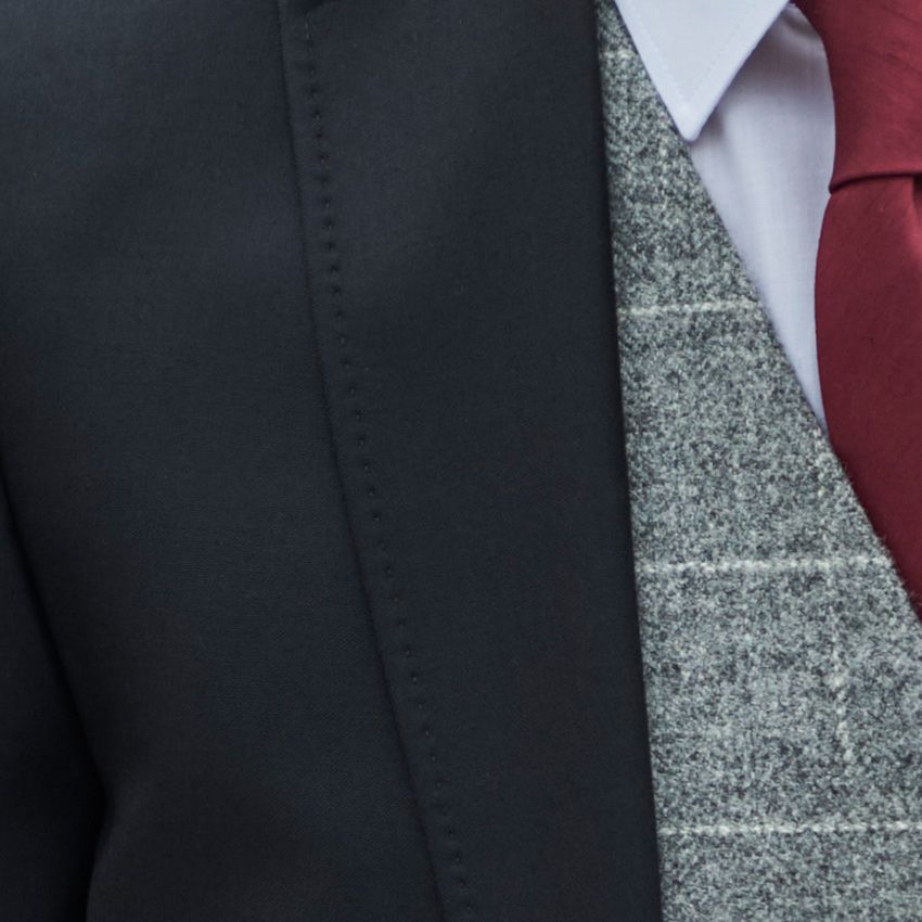 A modern black, lightweight mohair suit with matching trousers. Available with matching waistcoat if desired.