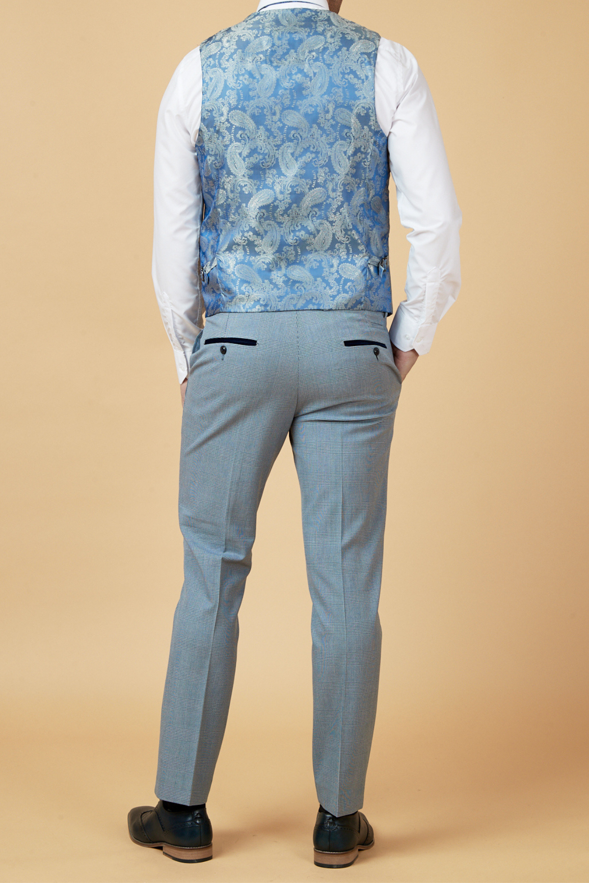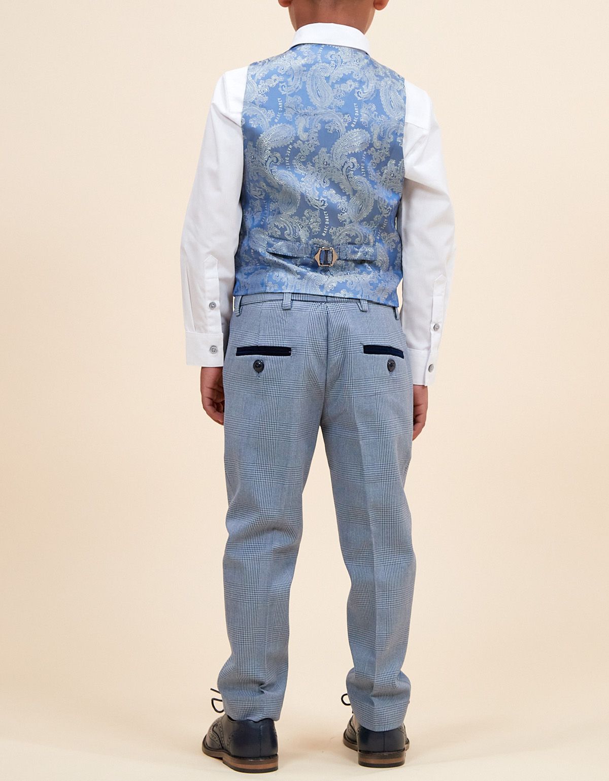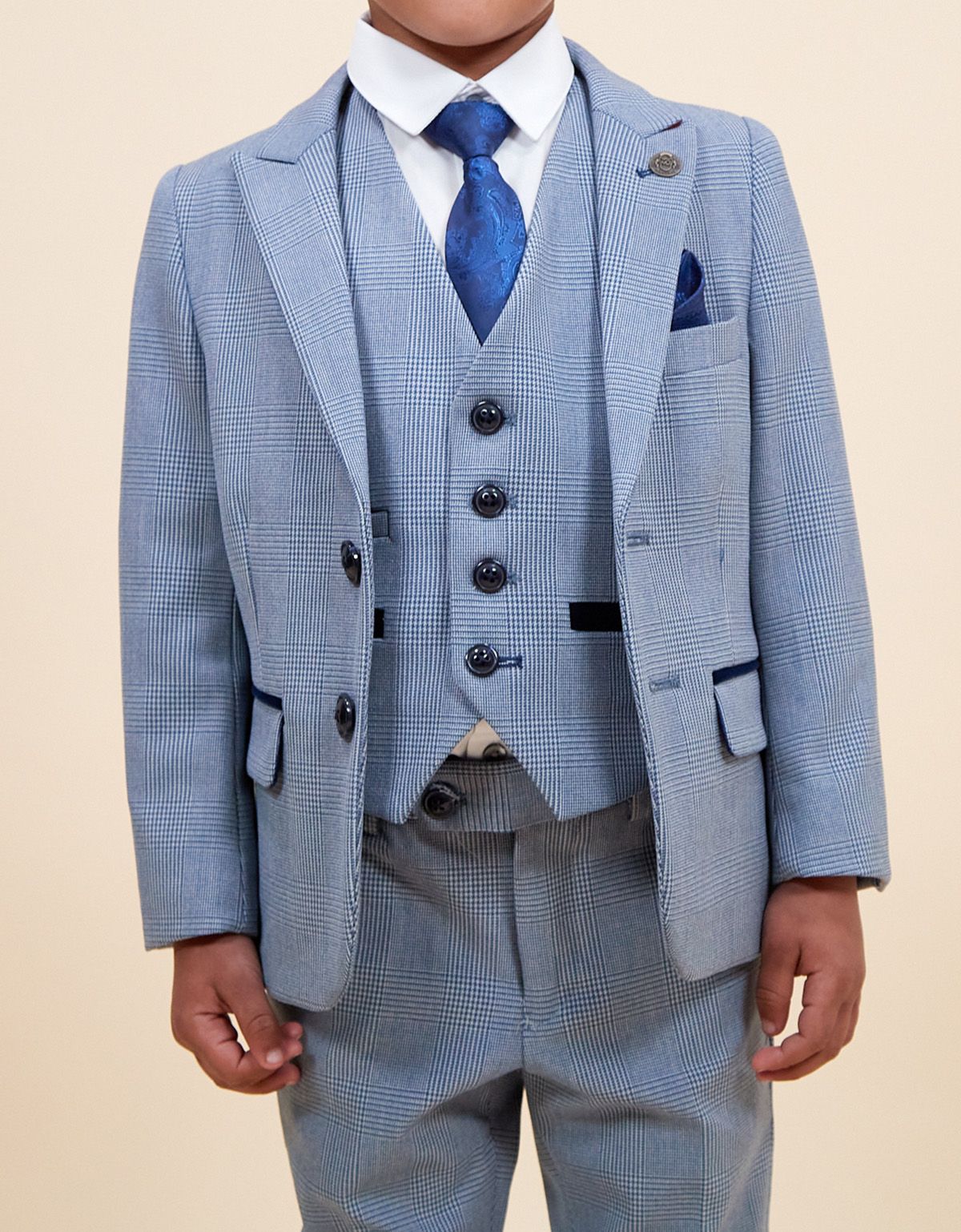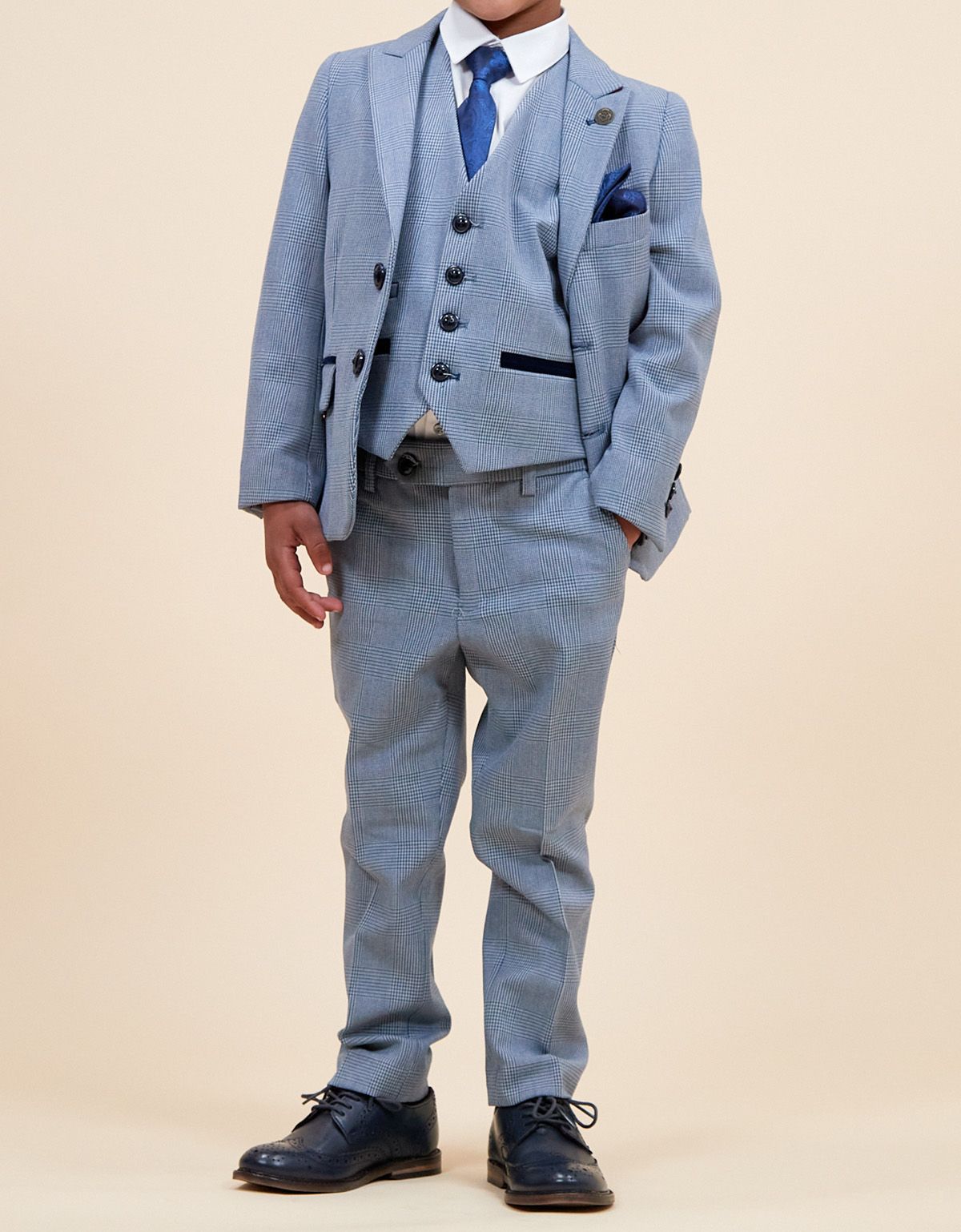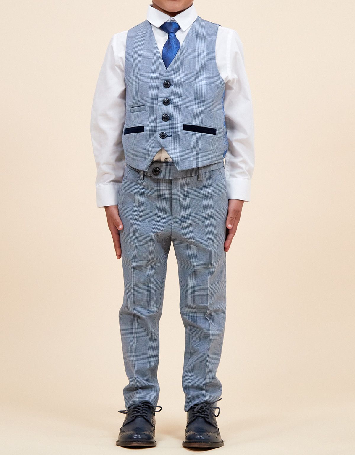 This sleek, men's three-piece suit will be a popular choice for weddings and special occasions. The Prince of Wales check pattern is a classic formal look, while the added elastane ensures comfort and flexibility all day. The sky blue colour coordinates beautifully with any formal event.