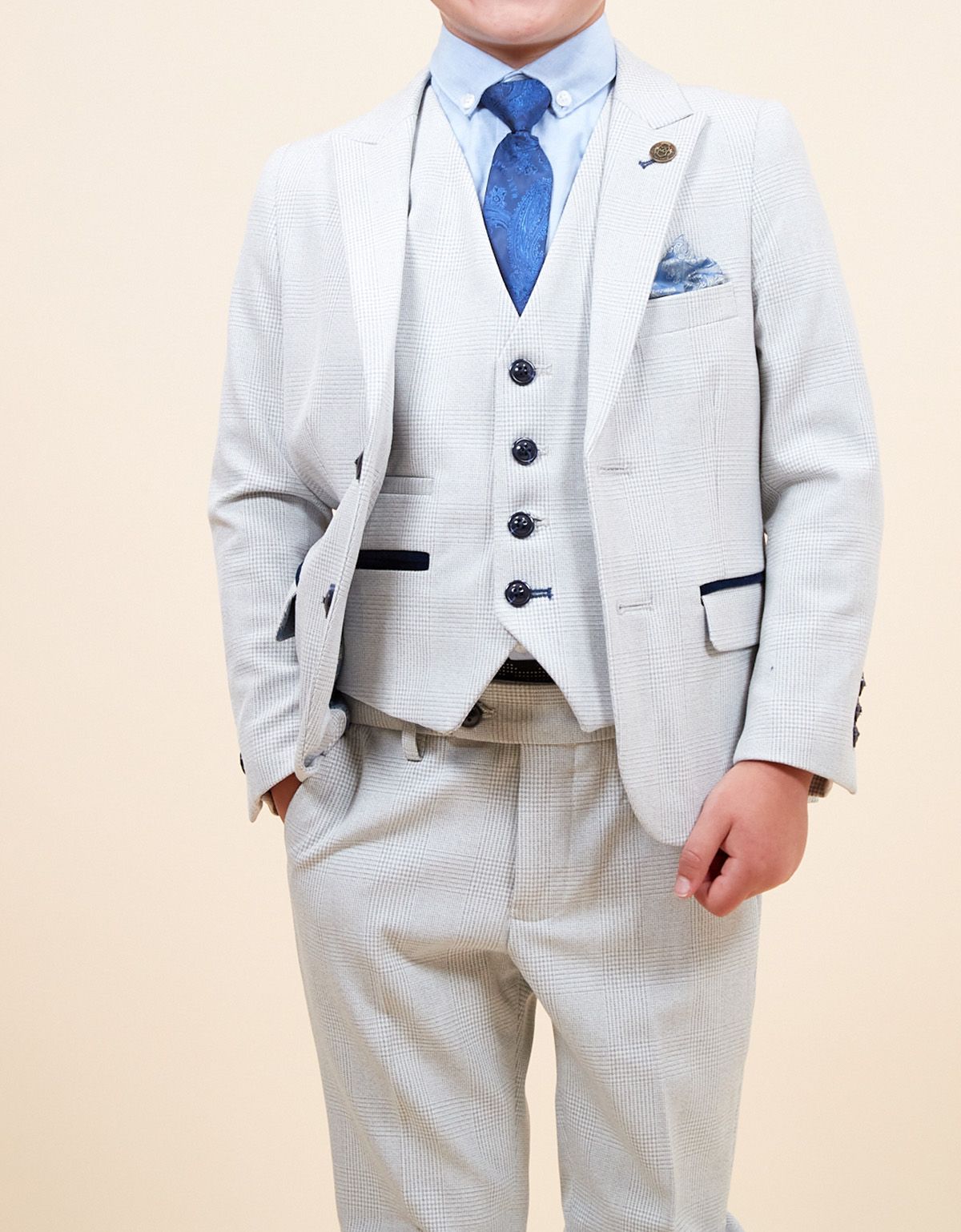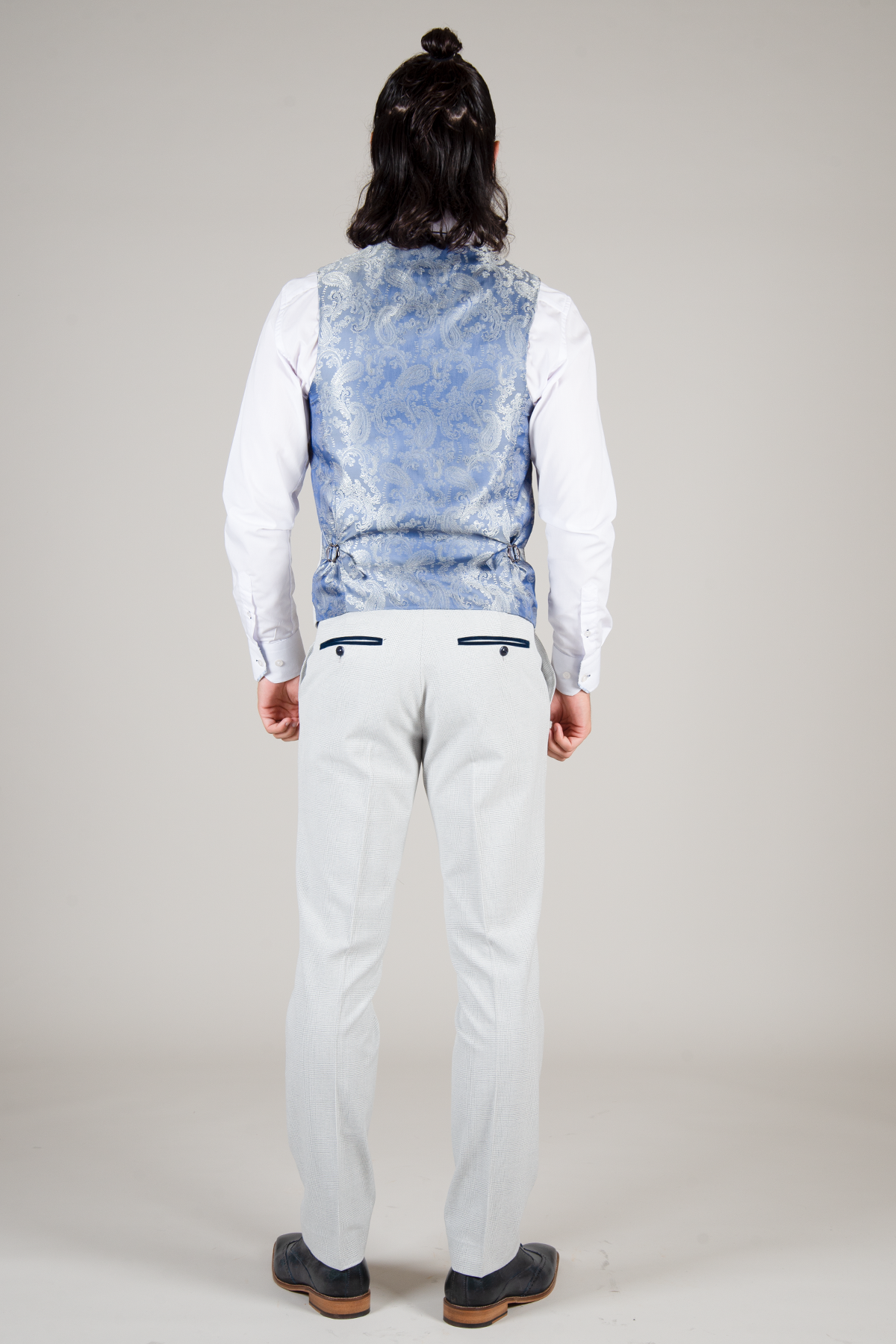 The cool tones of this men's blazer make it ideal for Spring/Summer styling. Laden with a distinctive Prince of Wales style check, it embodies heritage formalwear whilst retaining an air of modern style through the distinctive paisley lining. The navy velvet accents add a contemporary edge, whilst the added elastane in the fabric ensures comfort and durability from morning to night.