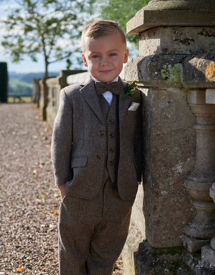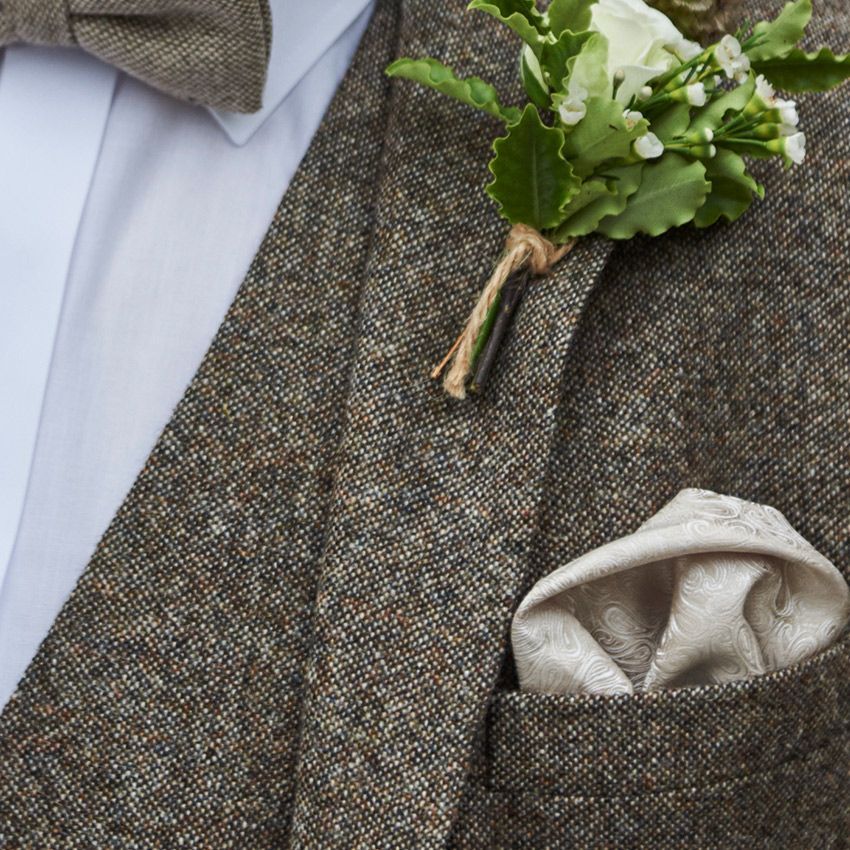 A Brown Tweed suit available with matching waistcoat. This stunning 3 piece suit is the perfect alternate option for the fashion conscious groom.