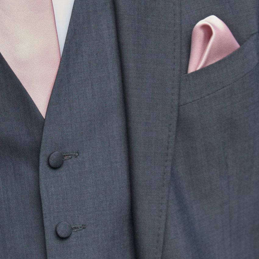 A modern charcoal grey, lightweight mohair suit with matching trousers. Available with matching waistcoat if desired.
