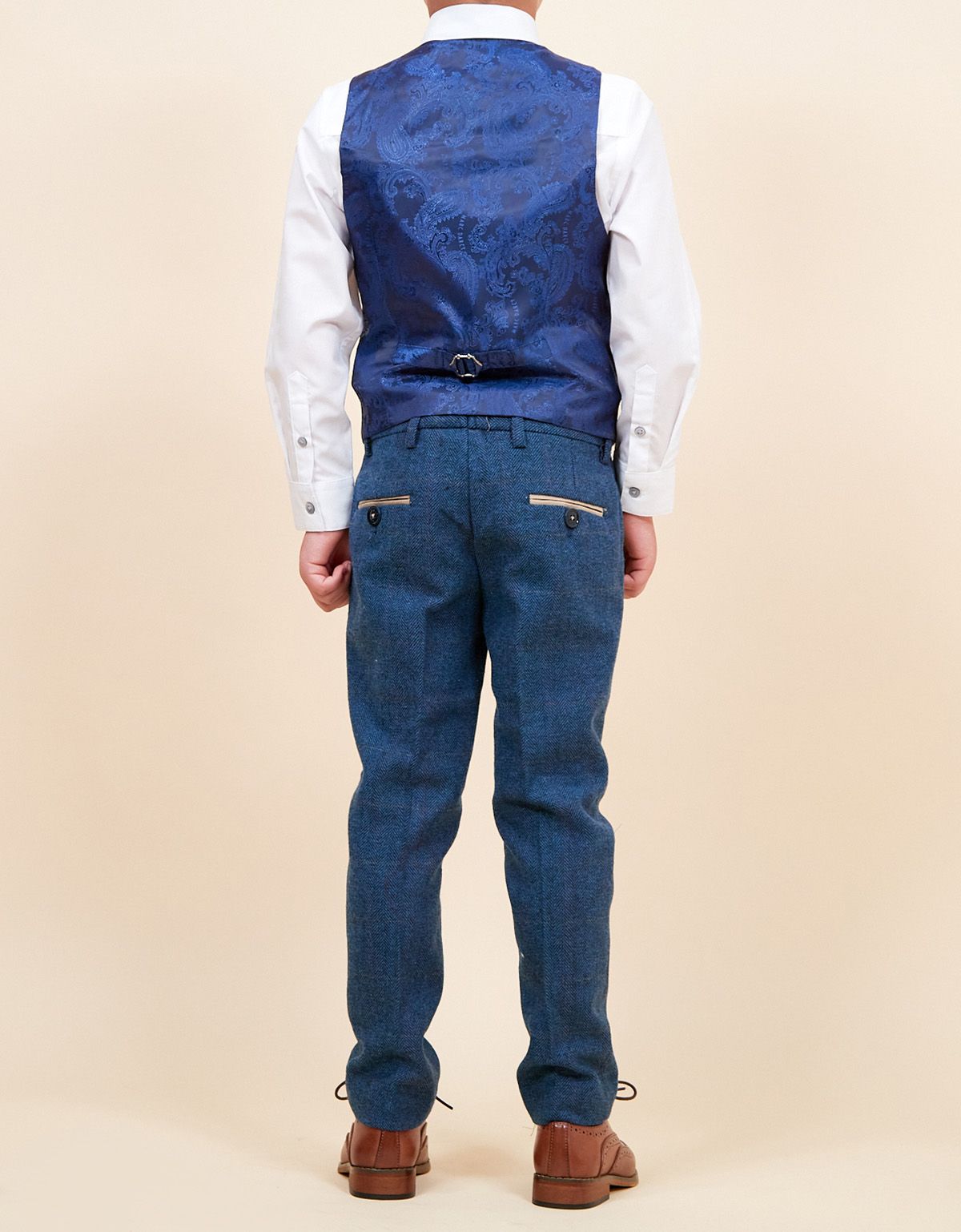 Wedding suit tick! The Dion suit is made for grooms with its soft lapis blue tone and champagne trims. It has been created with meticulous craftsmanship using a herringbone weave and the added wool content lends a hand to durability and comfort.