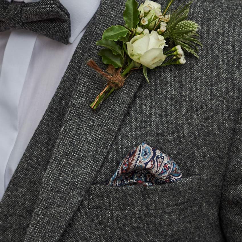 A Grey Tweed suit available with matching waistcoat. This stunning 3 piece suit is the perfect alternate option for the fashion conscious groom.