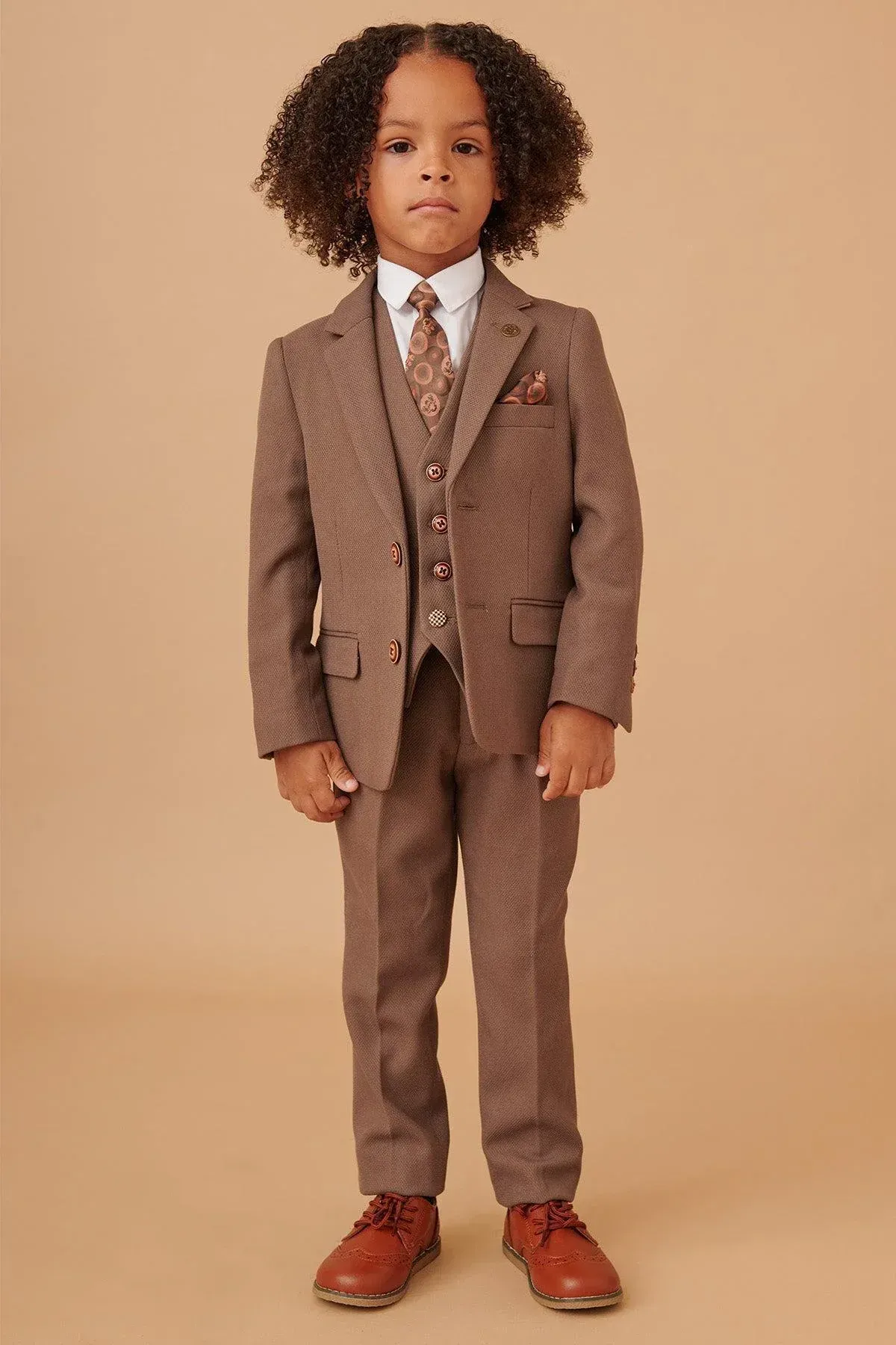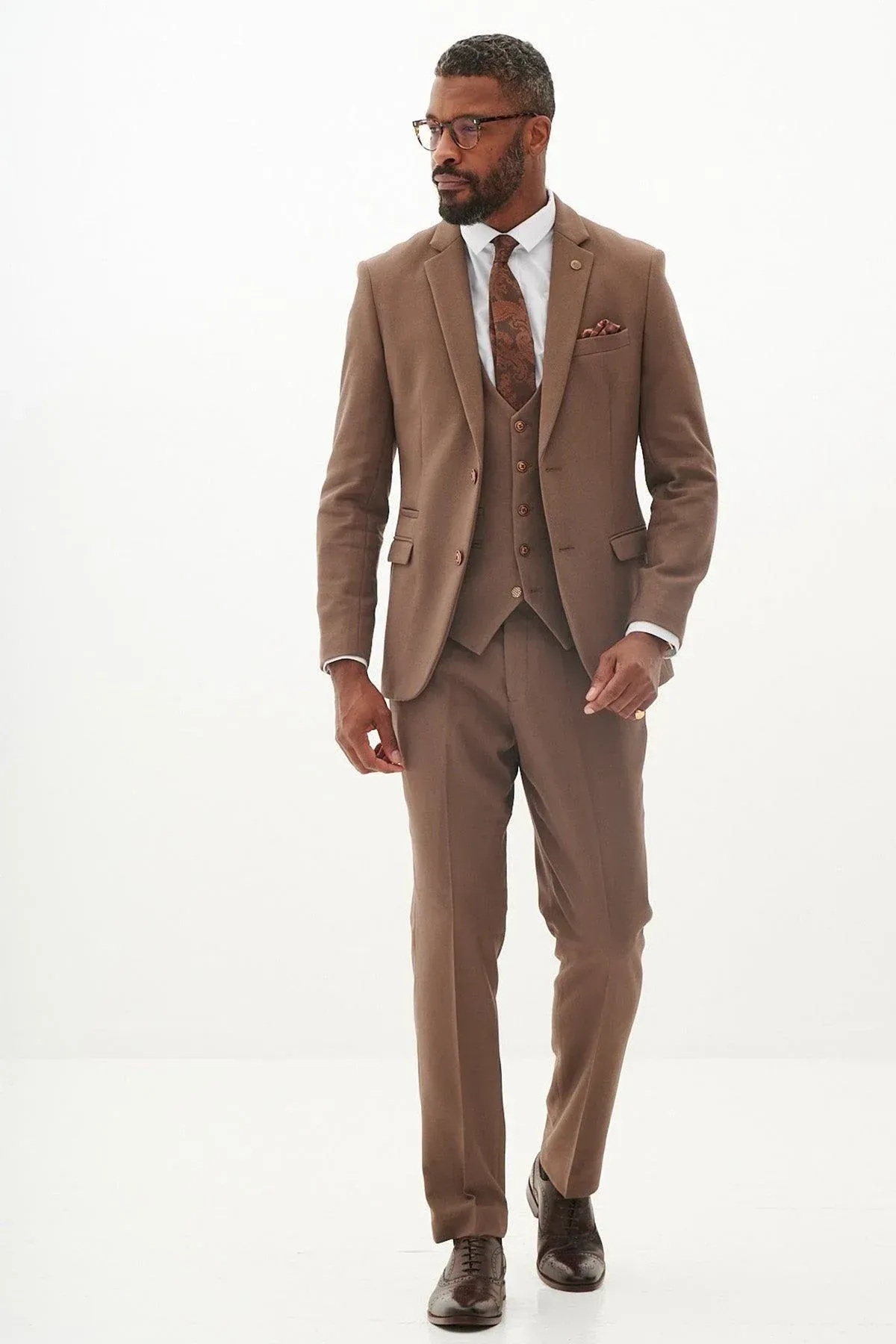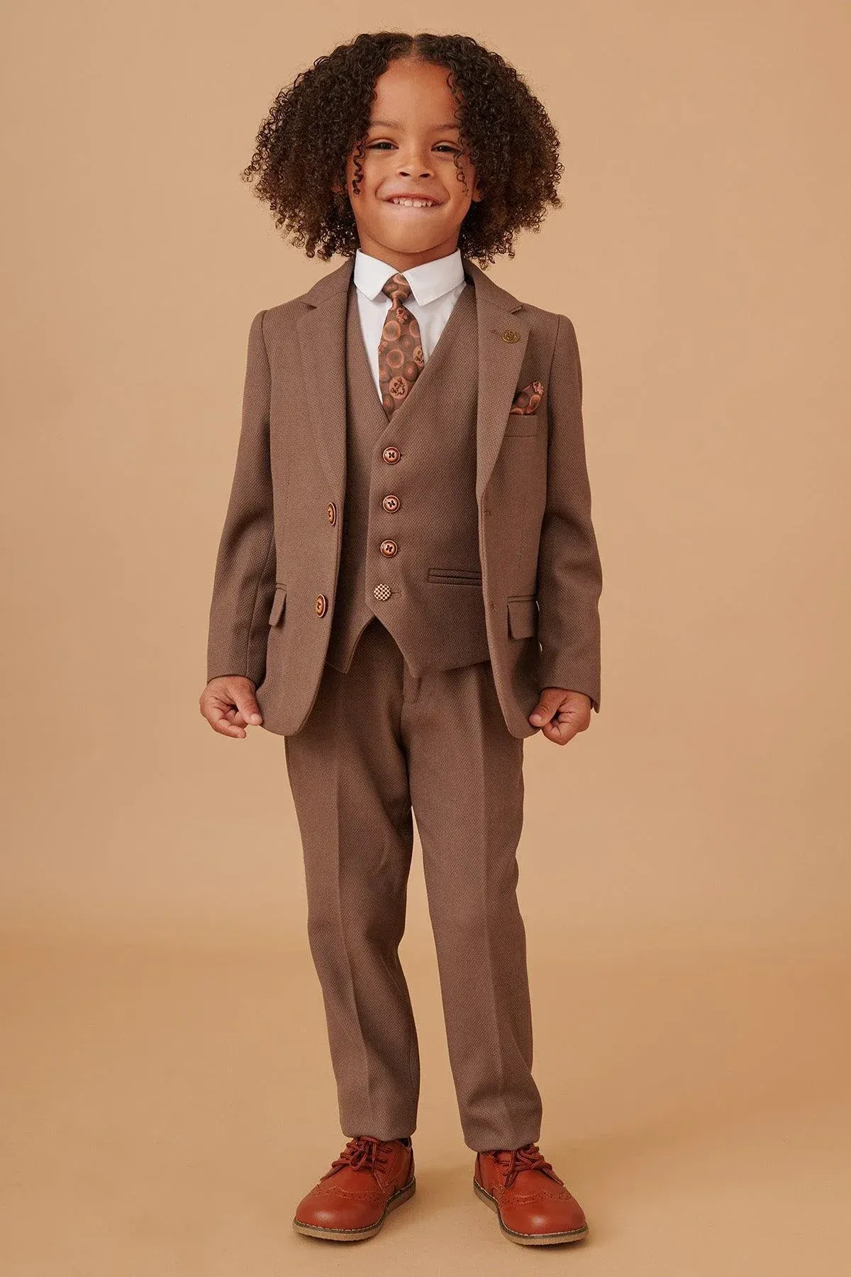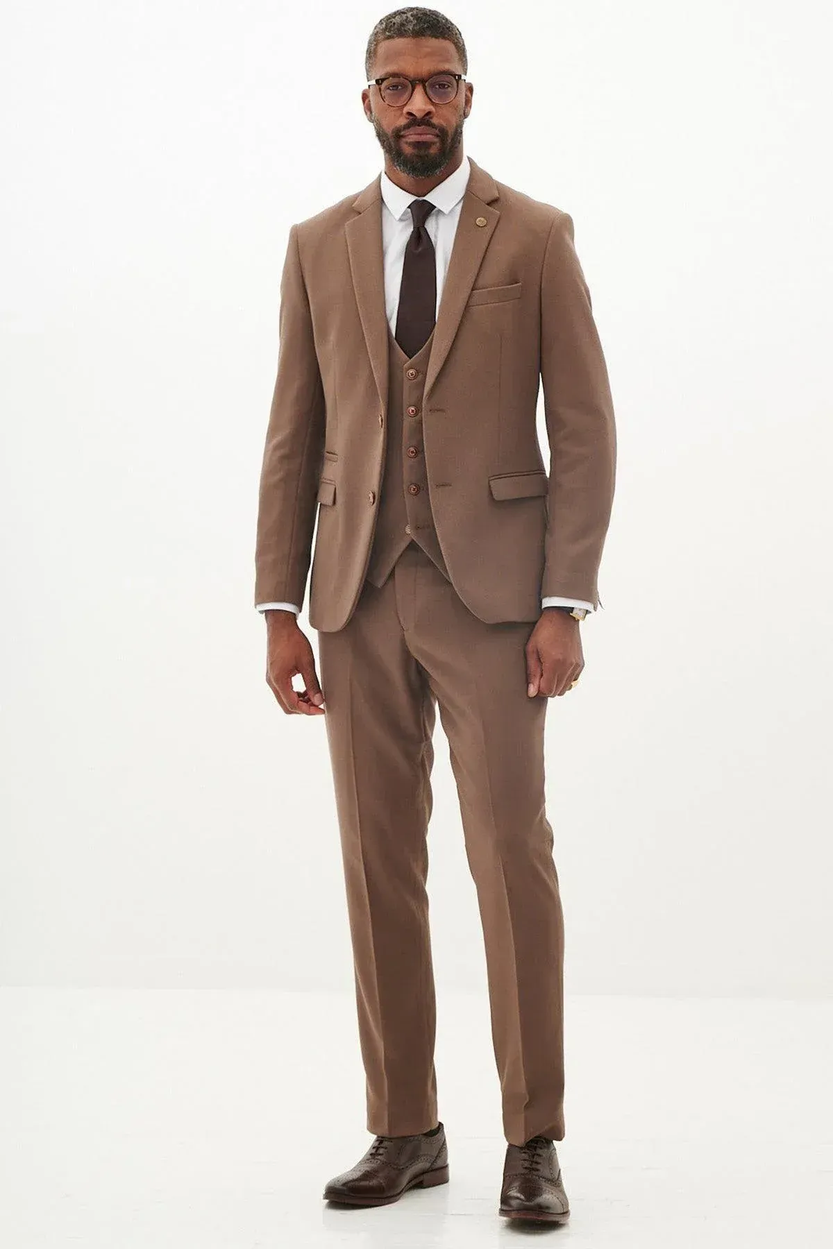 With its neutral colour and slim fit, this tailored suit is a three-piece you'll look forward to showing off. The style boasts the bespoke MD circle print lining, notch lapels with MD badge and is trimmed with marbled buttons.