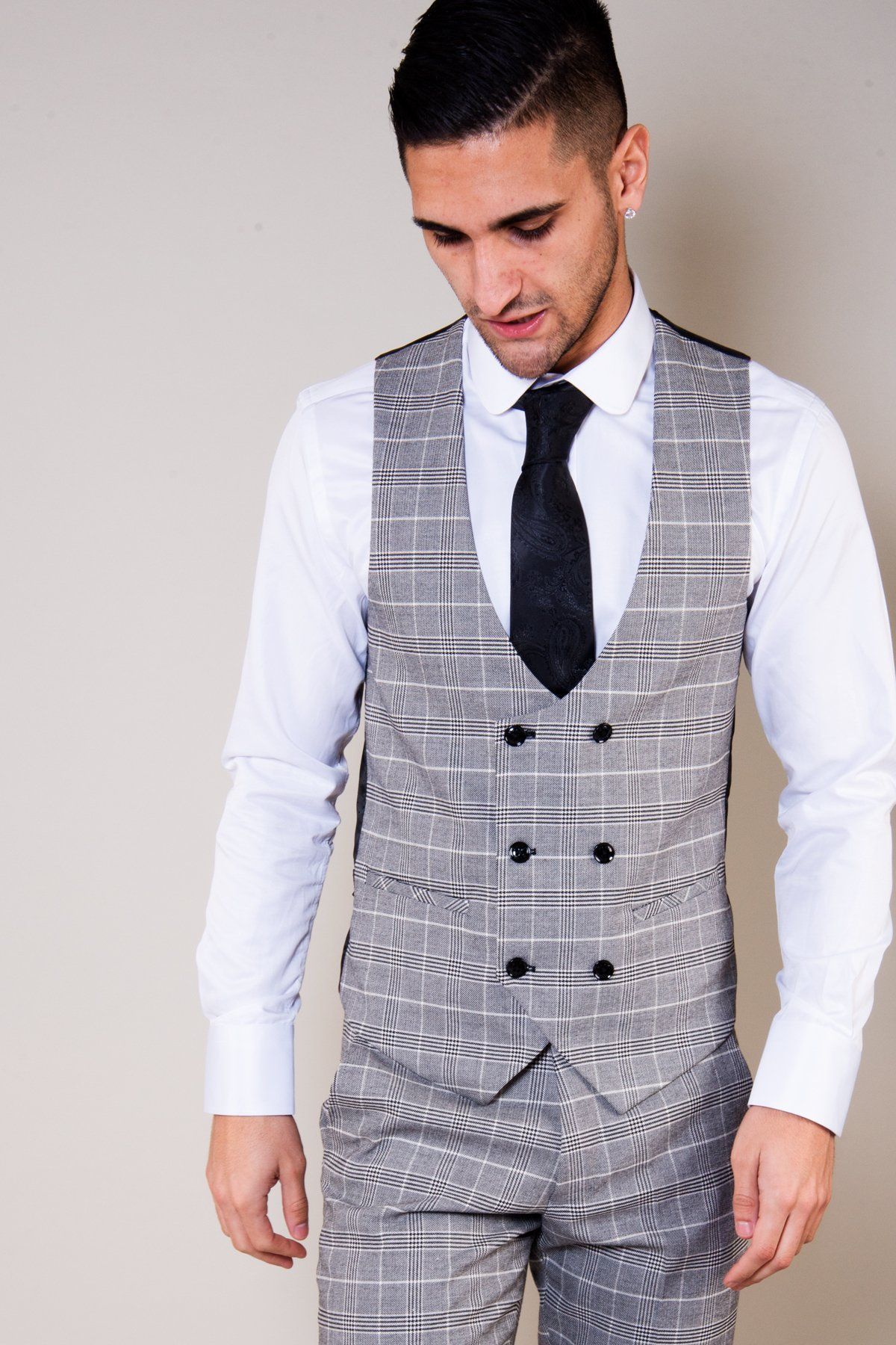 Monochrome is both timeless and sophisticated and can be worn all throughout the year. The Ross suit is no exception boasting the print of the season, Prince of Wales check, it really hits the mark. The double-breasted waistcoat cuts a sartorial silhouette and the subtle burgundy pocket square adds modern appeal.