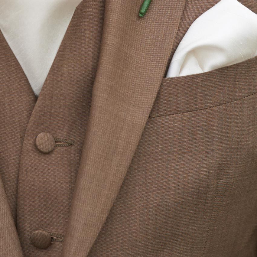 A sand coloured, lightweight Mohair suit with matching trousers. Modern, lightweight and available with matching waistcoat if desired.
